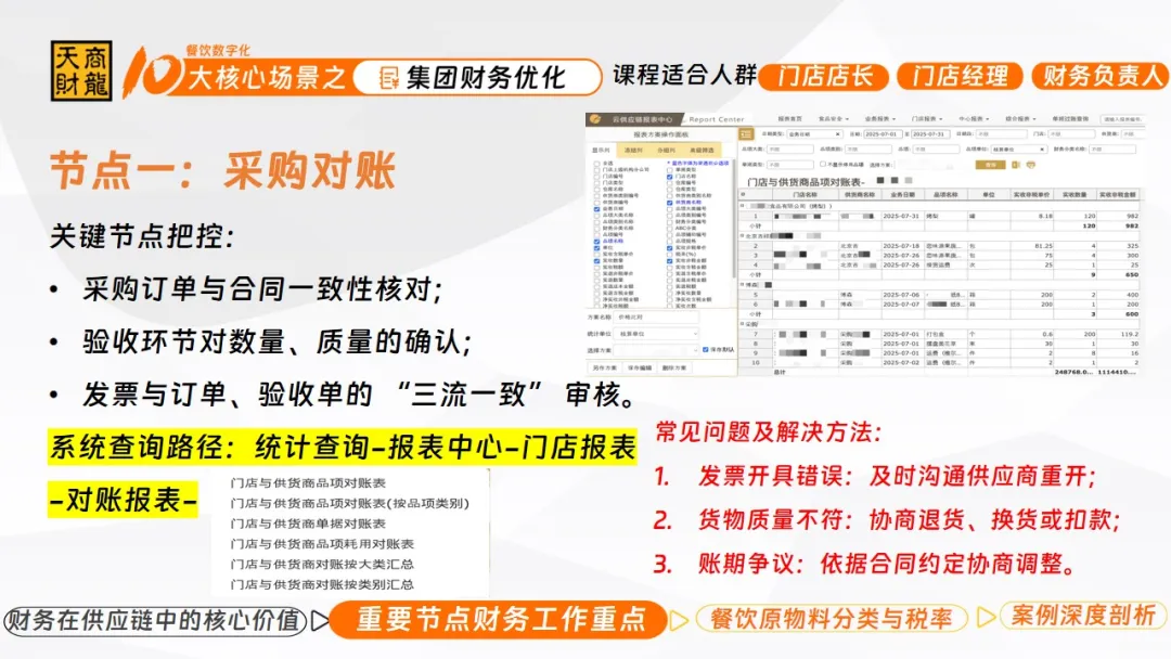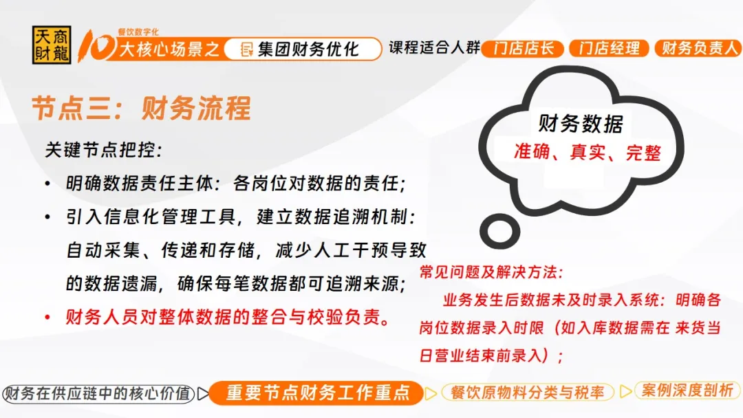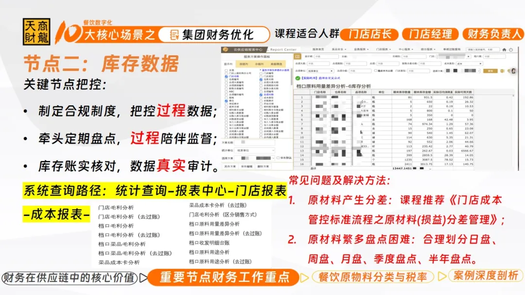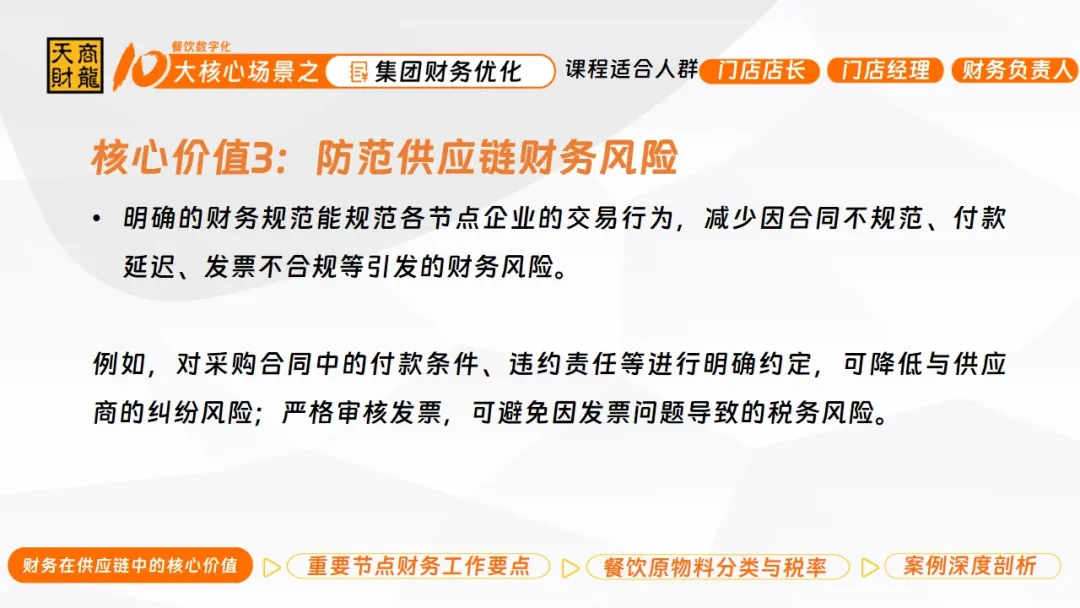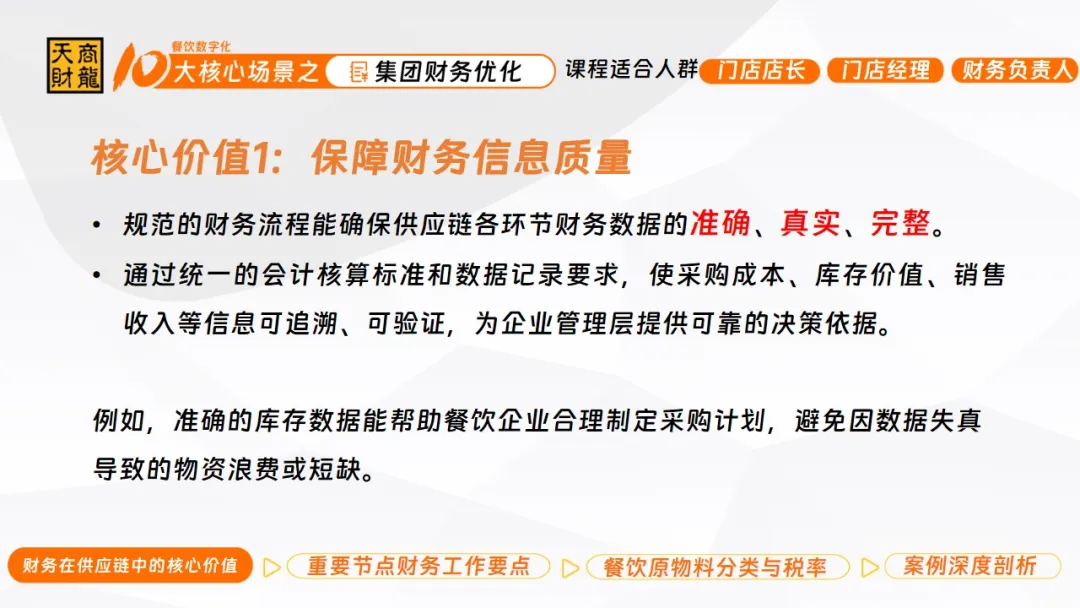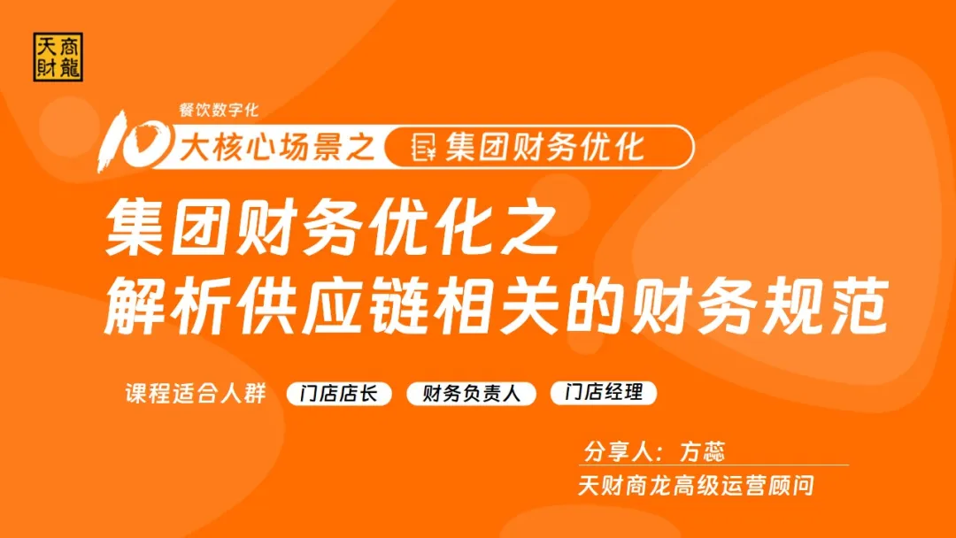 本次天財商龍餐飲研究院10大核心場景系列課程,就為大家揭秘餐飲供應鏈財務(wù)管理的三重價值,以及稅率選擇技巧與差異化盤點方法論,幫助您將財務(wù)部門從“成本中心”升級為“利潤中心”!