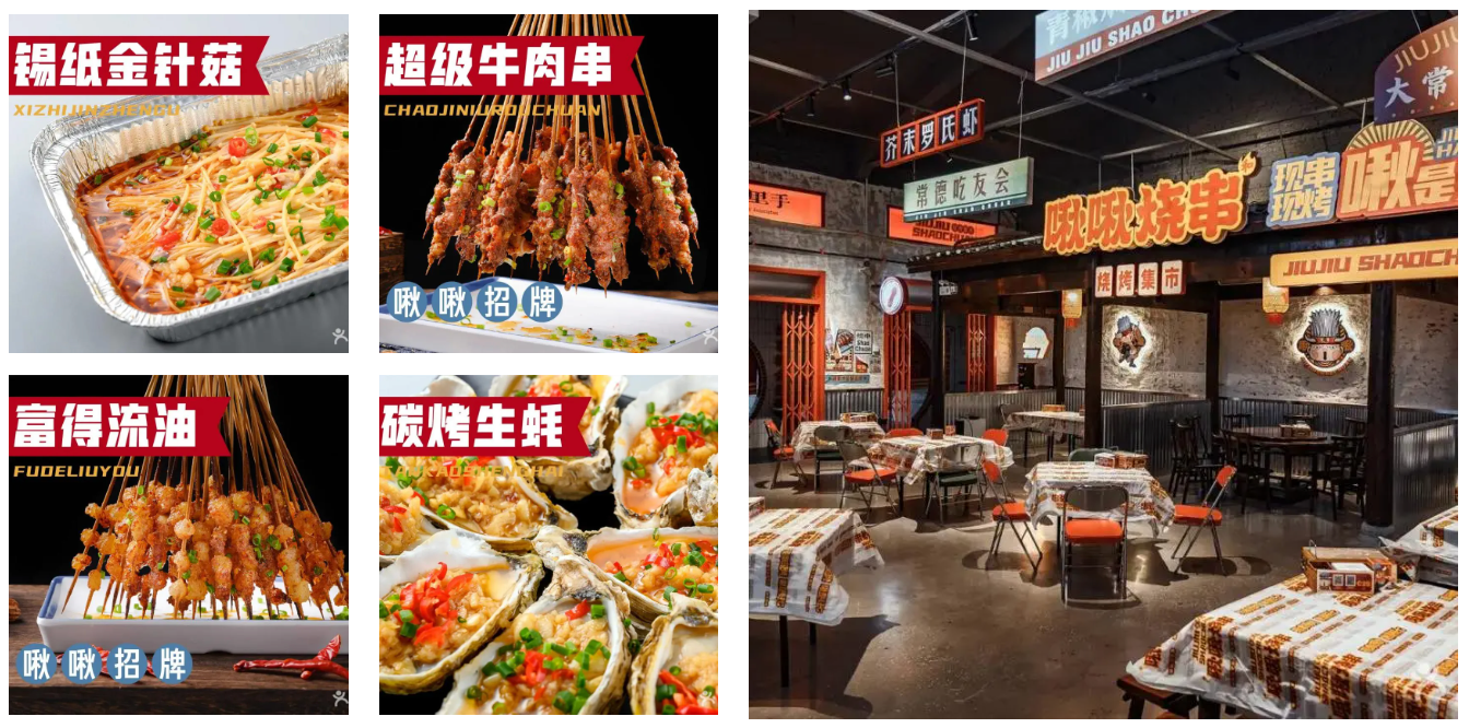 品牌環(huán)繞市井的煙火氣息,主打平民化和親民化的路線。主打烤串作為核心產(chǎn)品,輔以湖南菜系,因其貼心周到的服務(wù)以及多樣的食肆種類與合理的價(jià)格而備受歡迎。