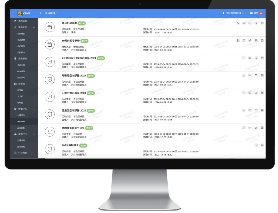 優(yōu)惠活動(dòng)促?gòu)?fù)購(gòu):推出送券、返券、滿額獎(jiǎng)勵(lì)等優(yōu)惠活動(dòng),精準(zhǔn)提升會(huì)員消費(fèi)頻次與客單價(jià)。