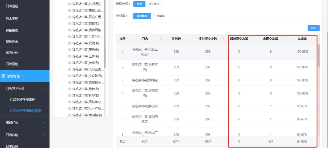 通過(guò)天財(cái)商龍巡店系統(tǒng)的落地,雞毛店川菜的管理效能實(shí)現(xiàn)跨越式提升,具體成效如下: