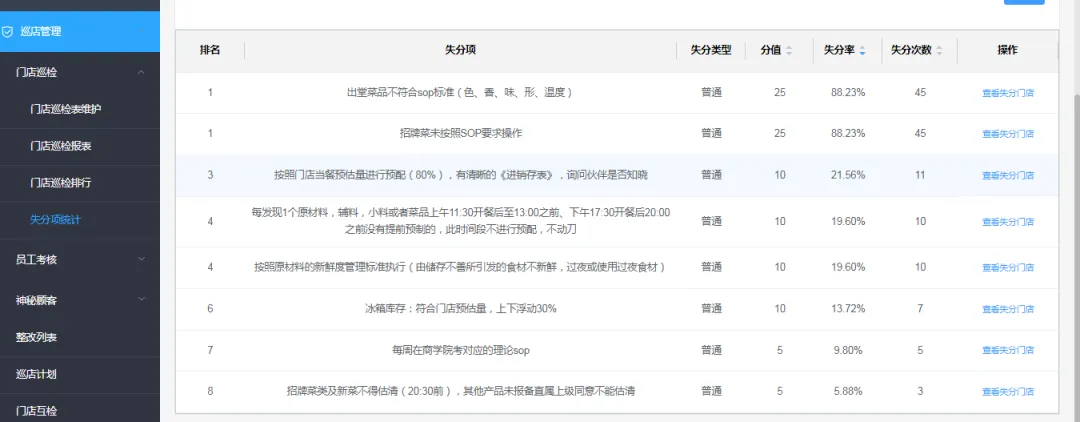 系統(tǒng)沉淀的巡檢、自檢、整改數(shù)據(jù),為門店排名、人員考核提供客觀依據(jù),更能通過(guò)失分項(xiàng)統(tǒng)計(jì)優(yōu)化管理標(biāo)準(zhǔn),實(shí)現(xiàn) “管理與現(xiàn)場(chǎng)的完美契合”,為品牌規(guī)?;瘮U(kuò)張奠定基礎(chǔ)。