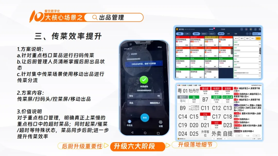 其次,針對后廚人員覺得固定位置掃碼不便的問題,可以通過移動掃碼設(shè)備進(jìn)一步提升掃碼傳菜效率。
