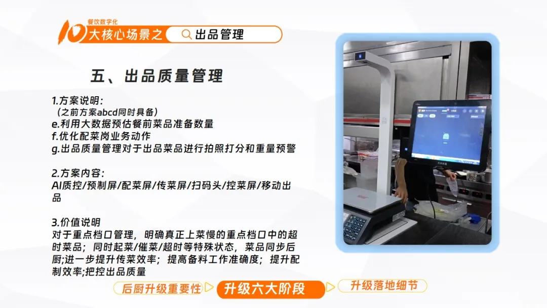 如果餐廳對出品品質(zhì)要求很高,并且已經(jīng)完成前面4項系統(tǒng)落地,那么在出品把控環(huán)節(jié),張興老師建議盡可能減少人為因素。