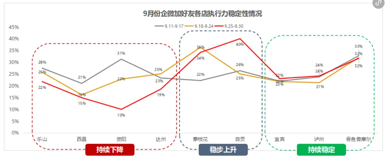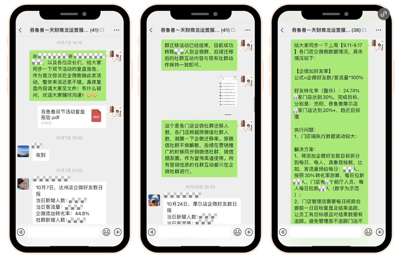 全周期數(shù)據(jù)復(fù)盤:建立周、月、季、年四級數(shù)據(jù)復(fù)盤機(jī)制,定期召開復(fù)盤會議。每周分析各門店企微好友轉(zhuǎn)化率、社群進(jìn)群率等核心指標(biāo),每月復(fù)盤會員復(fù)購、券核銷率等數(shù)據(jù),通過數(shù)據(jù)預(yù)警機(jī)制避免運(yùn)營偏差,確保策略精準(zhǔn)調(diào)整。