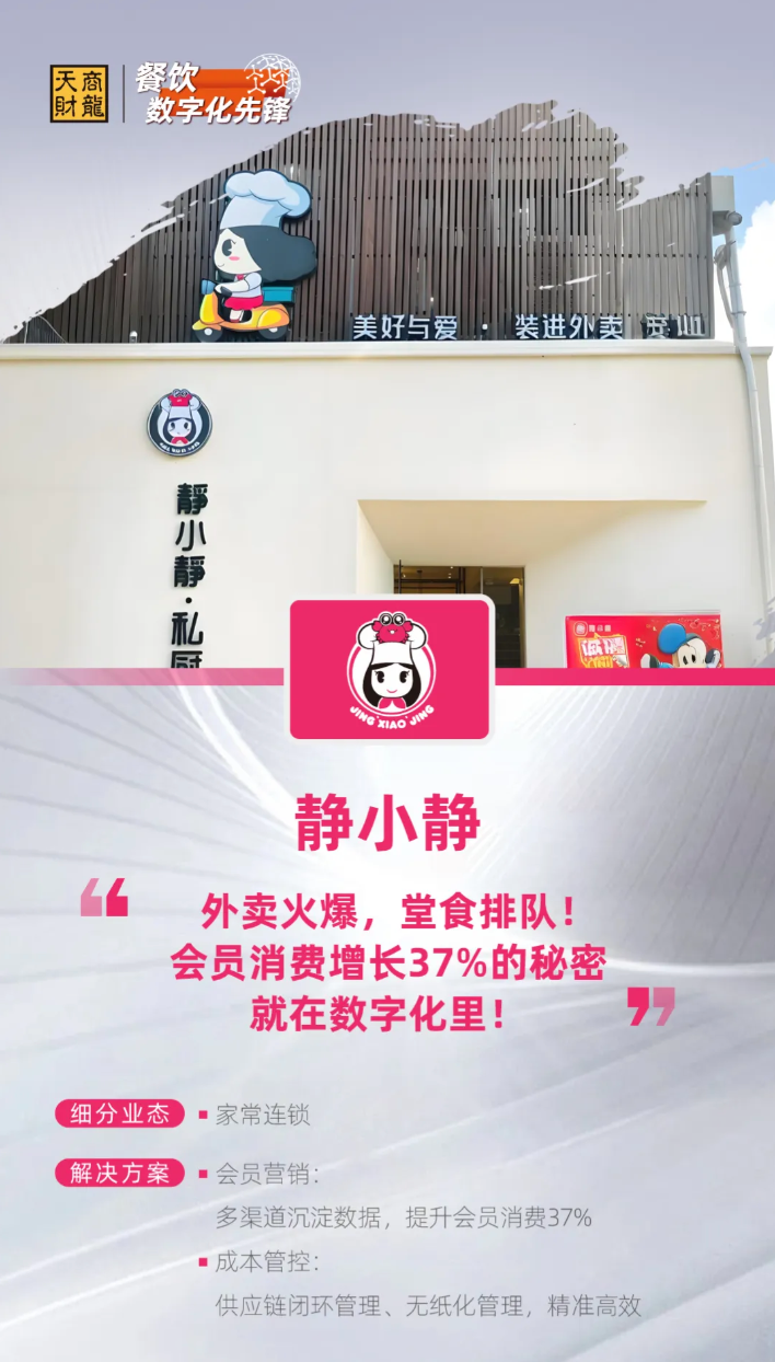 靜小靜連鎖與天財商龍的合作,為家常連鎖餐飲行業(yè)提供了數(shù)字化轉(zhuǎn)型的經(jīng)典范本。