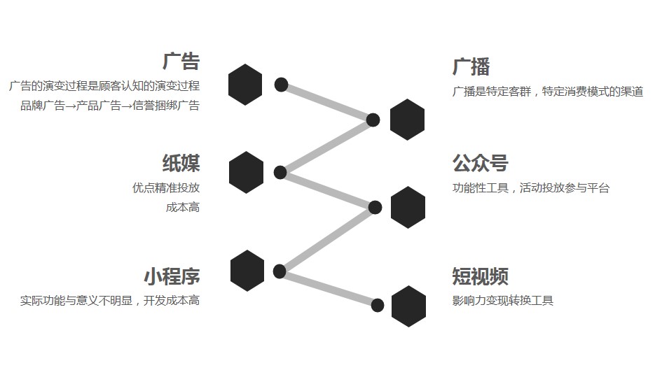 這個渠道的優(yōu)點(diǎn)是精準(zhǔn)投放,缺點(diǎn)是成本高。所以這個渠道適合定位商務(wù)聚餐或者能夠承接年會、大型聚餐的餐廳,而且要在特定時段,比如年底這個時間段去做。如果是快時尚的餐飲或者是做火鍋的、快餐的、小吃類的,就沒必要在紙媒上做廣告,因?yàn)楝F(xiàn)在紙媒主要用戶已經(jīng)是企業(yè),個人消費(fèi)者訂報紙的已經(jīng)很少了。