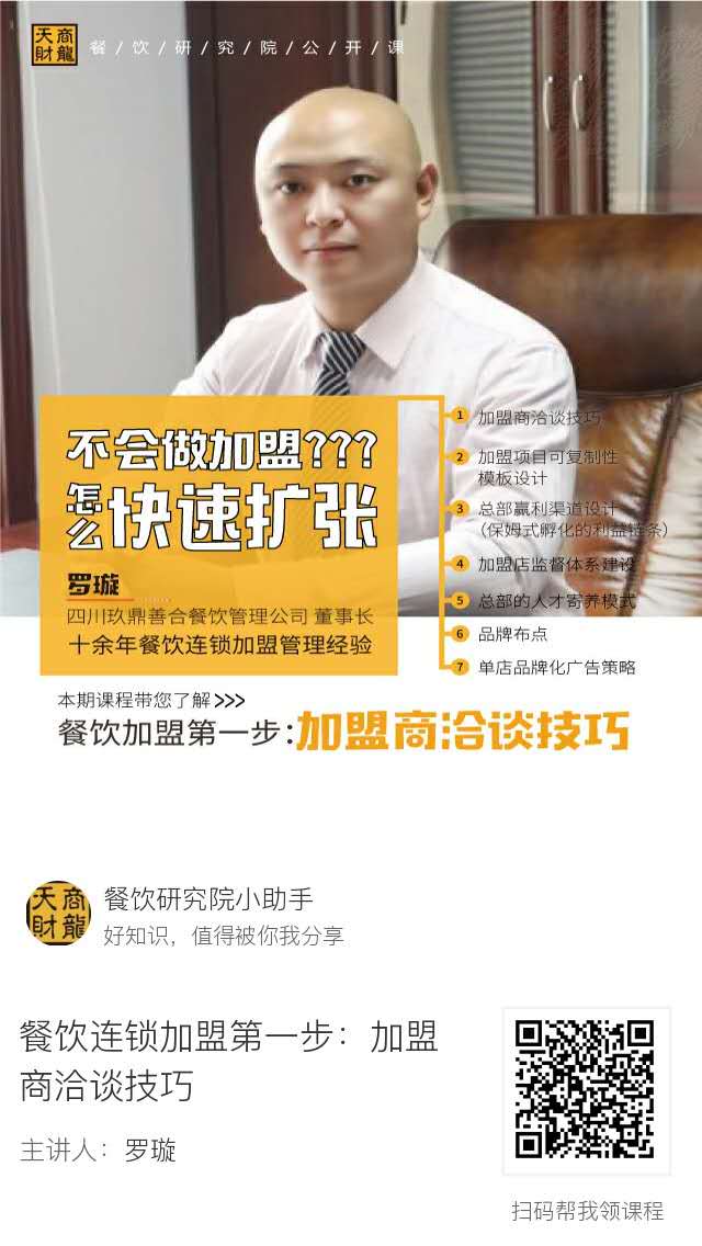 本周四晚8:00,與您相約天財(cái)商龍餐飲公開課,四川玖鼎善合餐飲管理公司董事長羅璇為您重點(diǎn)剖析!